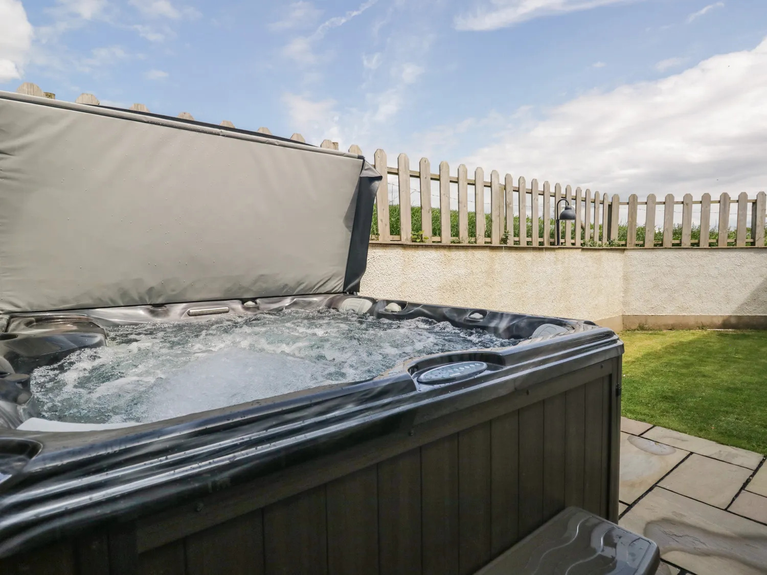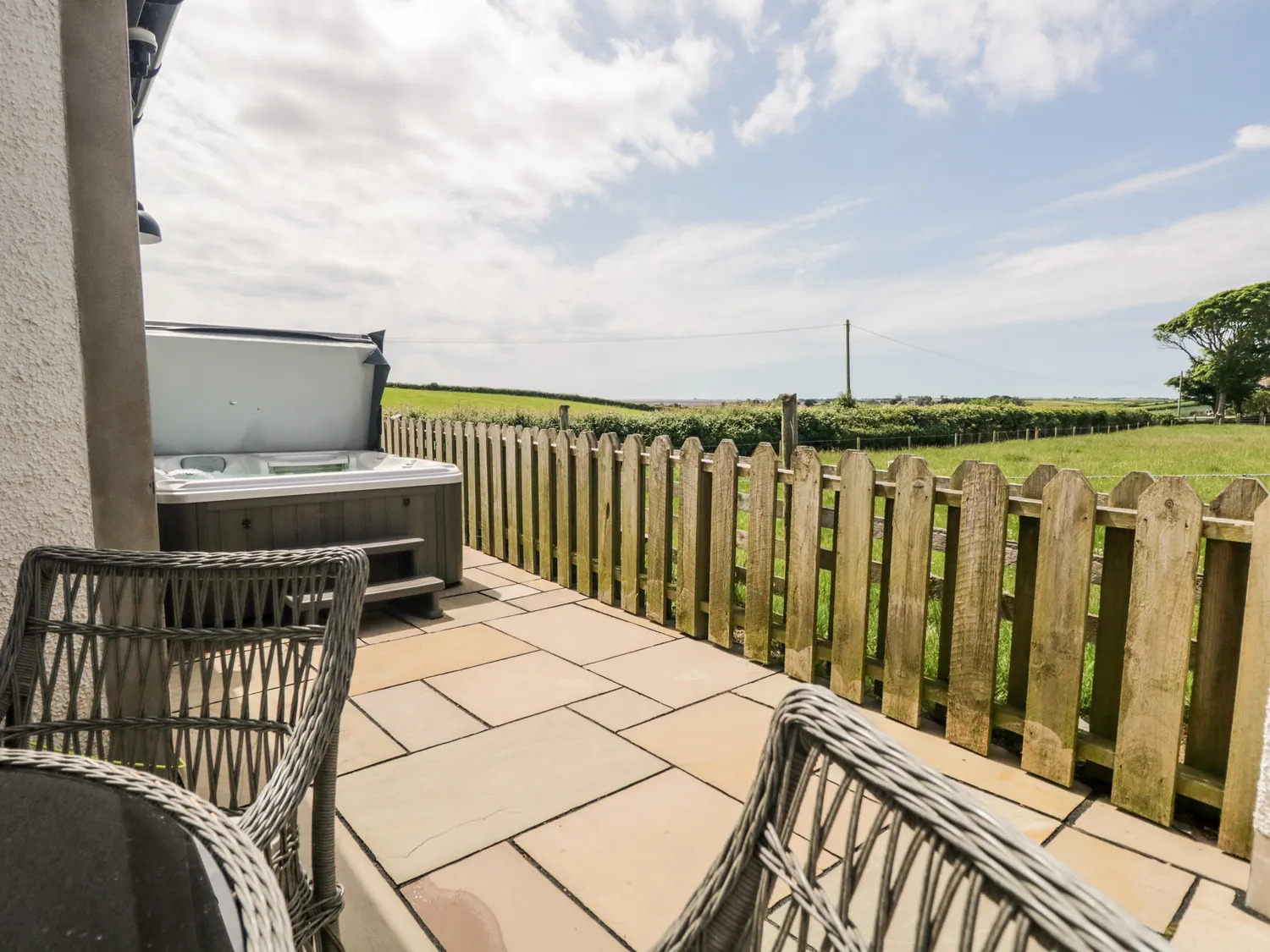 Each cottage has its own dedicated car parking at lower level, steps up to an Indian sandstone path and lawned gardens. To the rear/sides of the properties there are private terraces with hot tubs, providing the perfect place to have BBQs in summer and enjoy a luxurious getaway.